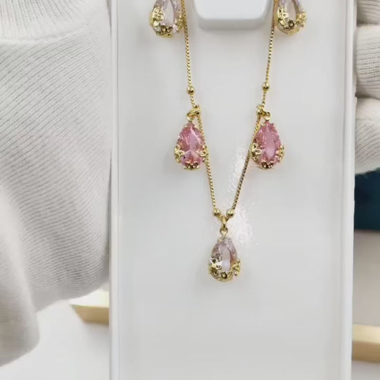 Elevate your jewelry collection with this sophisticated dual-tone teardrop set, expertly crafted to complement any occasion. The pendant features a graceful teardrop silhouette adorned with lustrous AD stones that catch light beautifully, while the contrasting metal tones add contemporary elegance. The matching earrings ensure a cohesive, polished look that transitions seamlessly from day to evening wear. Precision-cut stones and quality craftsmanship make this set a versatile investment piece for those who appreciate refined aesthetics and timeless design.