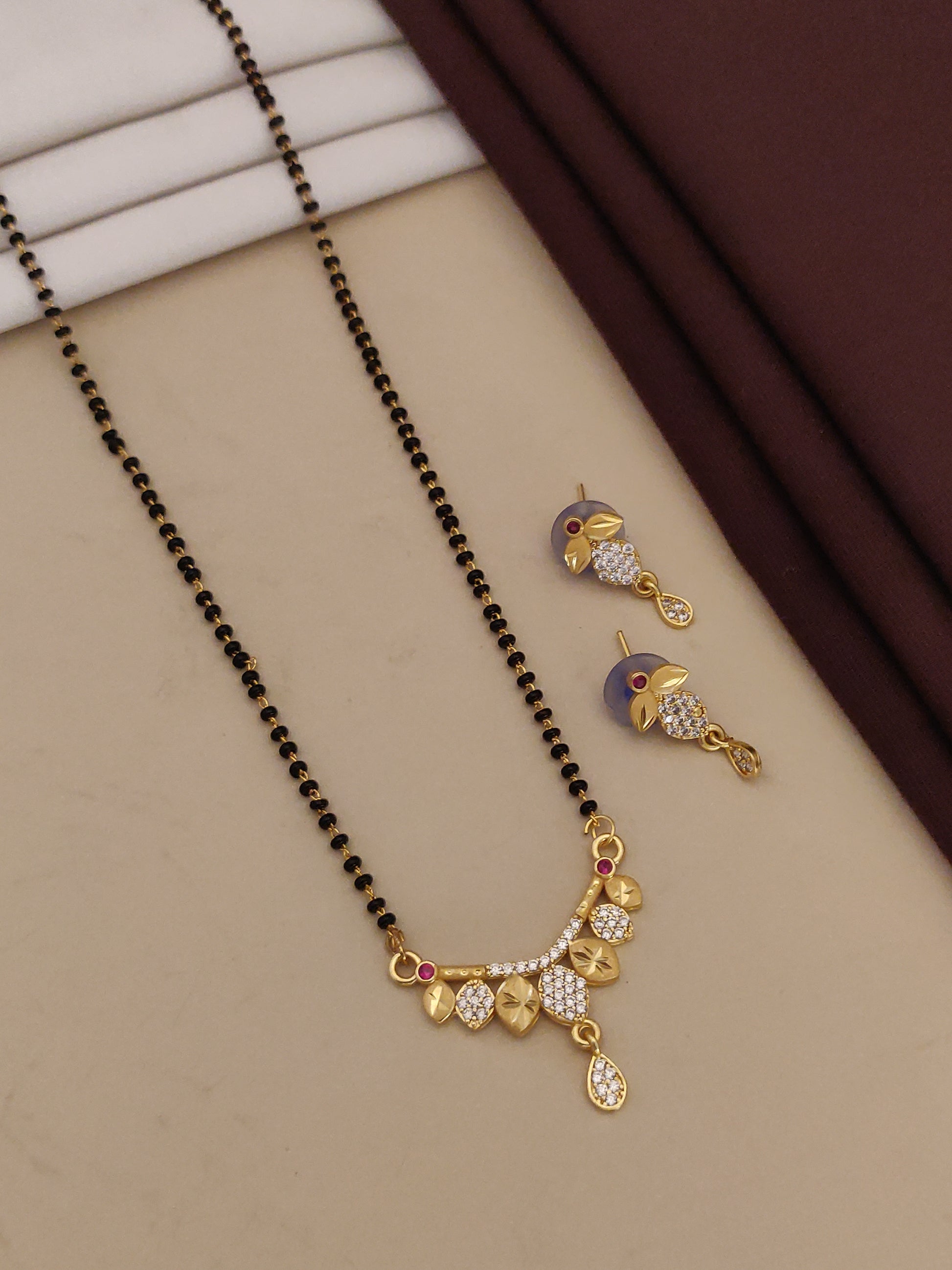 Forming ad diamond high gold plated leaf mangalsutra 3 months guarantee