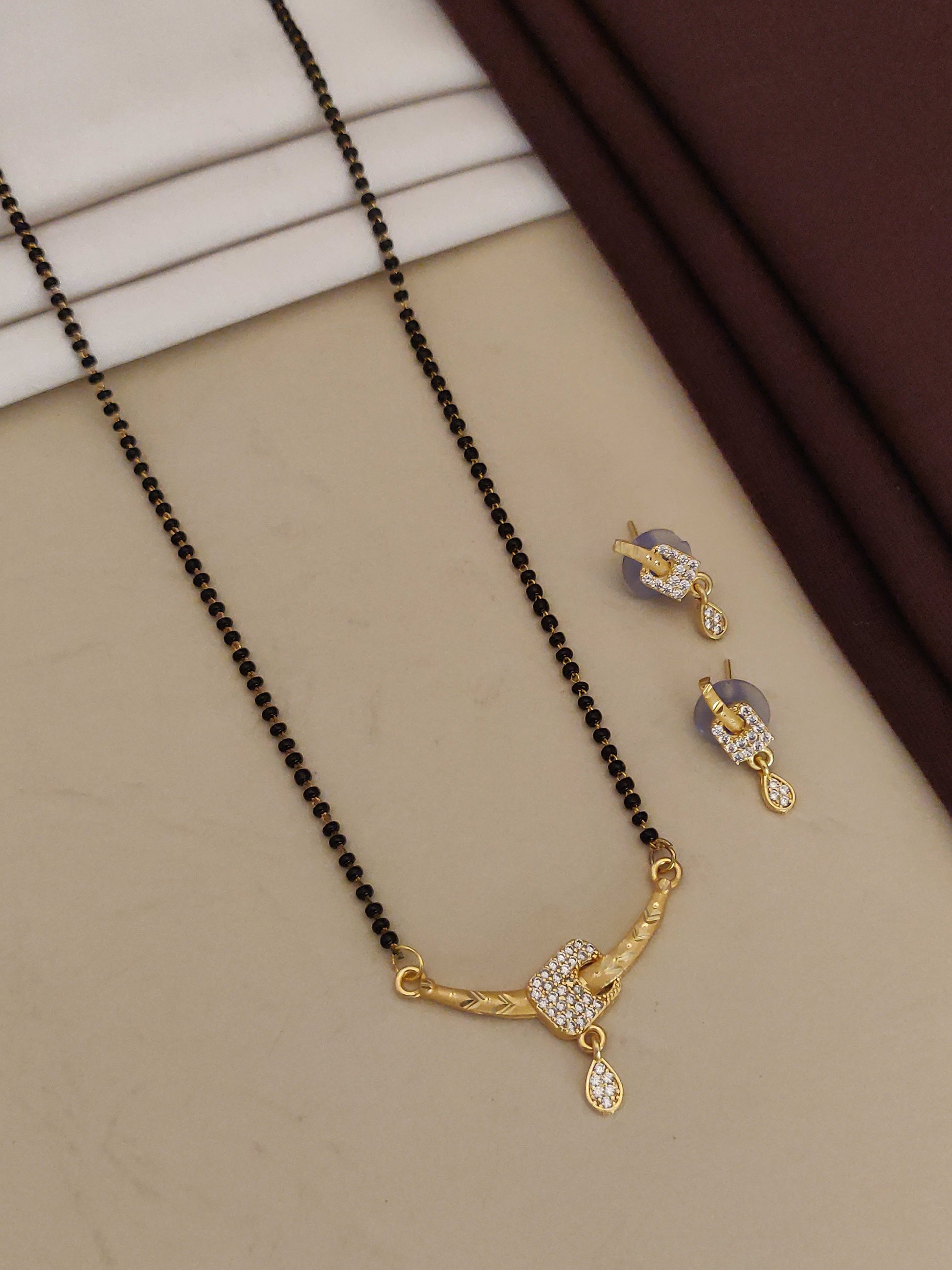 Celebrate the beauty of tradition with a modern touch with this Forming AD Diamond High Gold Plated Mangalsutra. Designed with premium-quality high gold plating, this exquisite piece is adorned with brilliant American Diamonds (AD) that add a captivating sparkle to its elegant design.