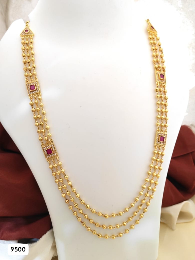 Elegant micro gold plated fancy necklace designed with sparkling AD diamonds and rich ruby stones in a unique 3-line square pattern. Crafted with premium plating for long-lasting shine, this lightweight jewelry is perfect for daily wear, parties, and festive occasions. Its stylish yet traditional look makes it an ideal accessory to enhance both ethnic and western outfits, and a perfect gifting choice for women.